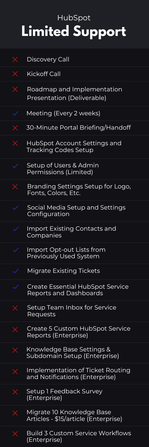 Unlock more than $3,000 worth of extra services compared to HubSpot's onboarding offerings!